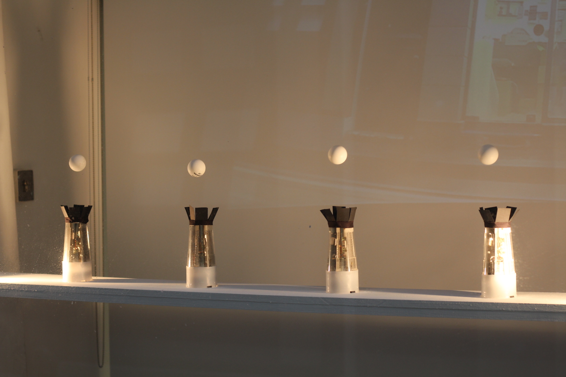 Sur le marché parallèle de l’art DataDada, le vent se vend bien, les oeuvres un peu moins. La lumière chaude des fins d'après-midi s’achète et les rumeurs de la rue font fluctuer le cours des choses. De temps en temps, un passant hâtif s’arrête devant la vitre, devient tête de patate et fait voler les balles à son passage. Pour se calmer, il regarde la tête vide des balais faire un ballet. La vie moderne est à ce prix.